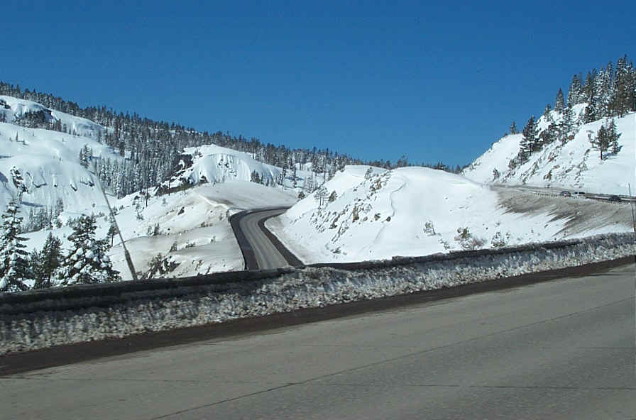 | Making our way through Donner's Pass which had the two foot snow storm a