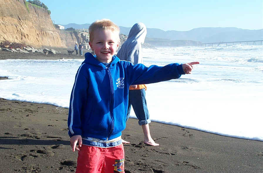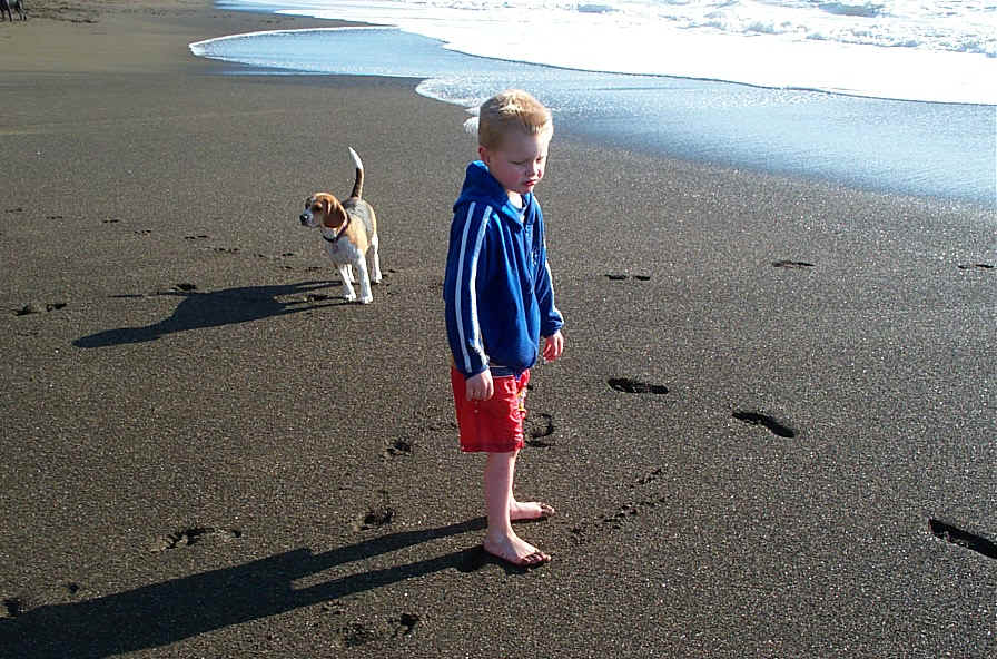 | We headed straight for the beach. Yes, Nick fell in. It's a