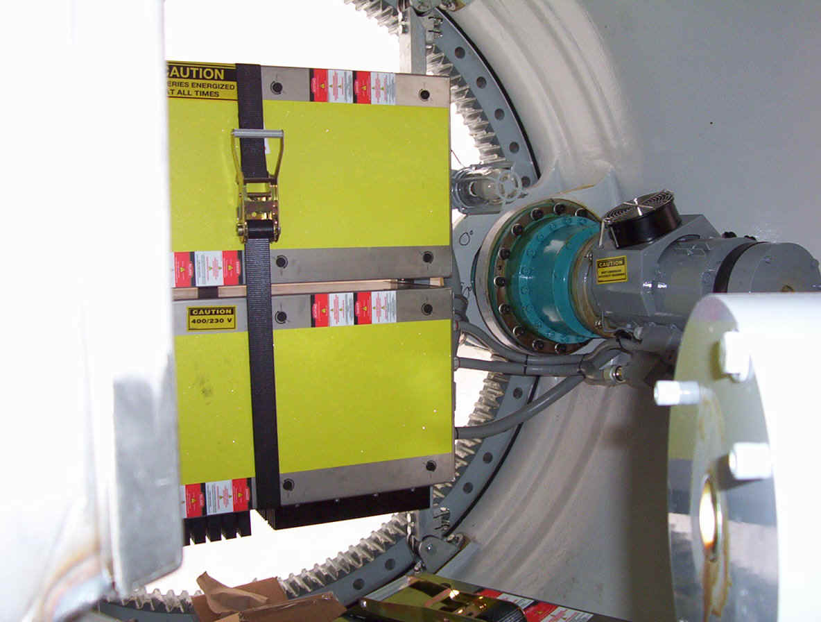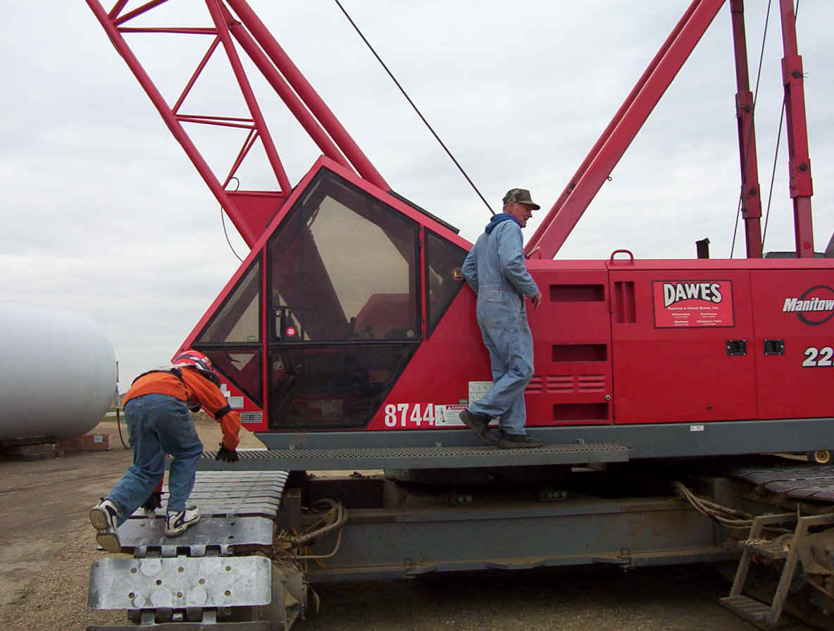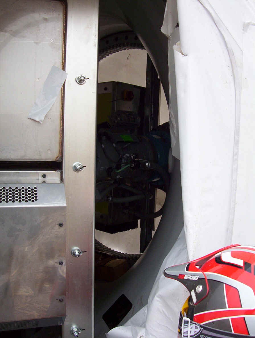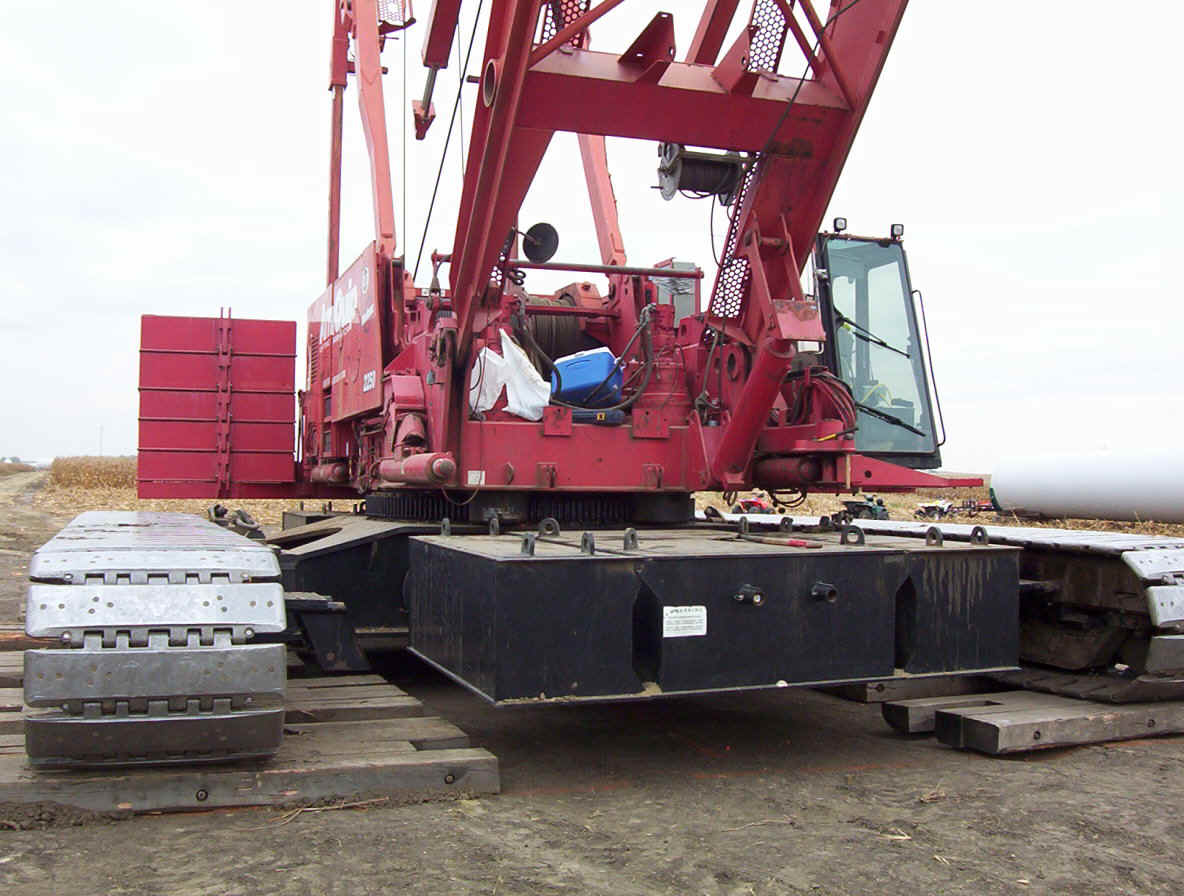 This contractor is working around the clock to get these up and running before Jan 1st so he can qualify for a special government grant worth millions. He has three cranes running at a cost of $70,000 per month each for rental. Most of the work up high is done at night when the winds are at thier lowest. Once the pad is formed, it takes about three days to complete a tower. The generator was raised and mounted within two hours while we were there.